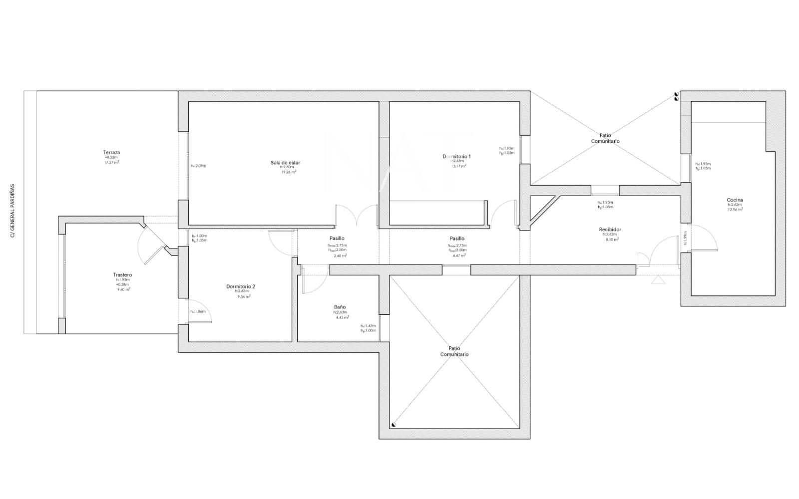 Con tres habitaciones y tres baños, el piso se encuentra actualmente para reformar, ofreciendo una excelente oportunidad para personalizar cada rincón según las necesidades del comprador. La distribución actual permite múltiples posibilidades de diseño, y la presencia de patios bien conservados añade un plus de ventilación y luminosidad interior.