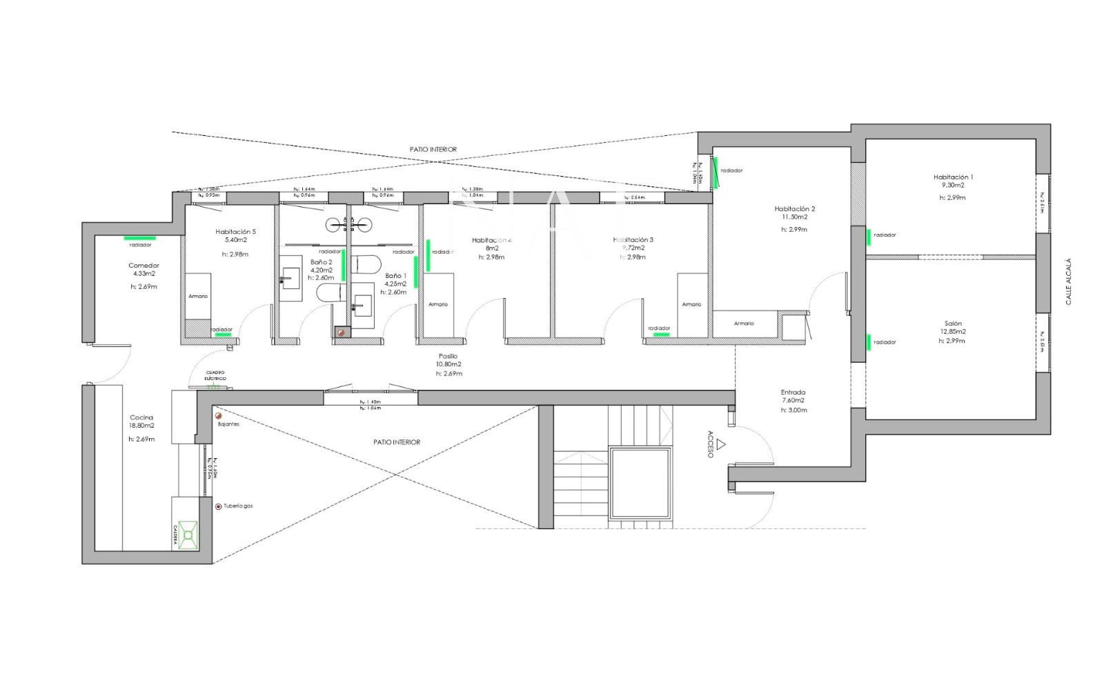 Con una superficie bien distribuida, el piso ofrece tres habitaciones y tres baños, además de dos balcones que aportan luz natural y vistas a una calle tranquila. Al estar en estado para reformar, representa una excelente oportunidad para diseñar una vivienda a medida, adaptándola a las necesidades y gustos del comprador, sin renunciar al carácter señorial de su estructura original.