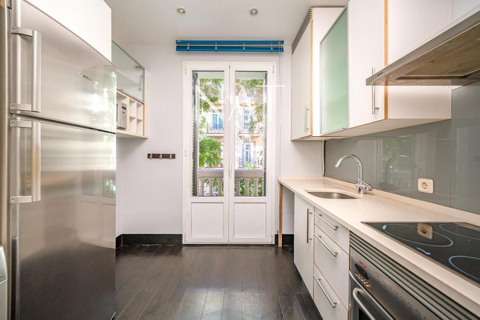 Ubicada en una encantadora finca de fachada clásica recién rehabilitada, esta luminosa propiedad destaca por su ubicación en chaflán, lo que le permite contar con 7 balcones a la calle que inundan de luz natural todos los espacios.