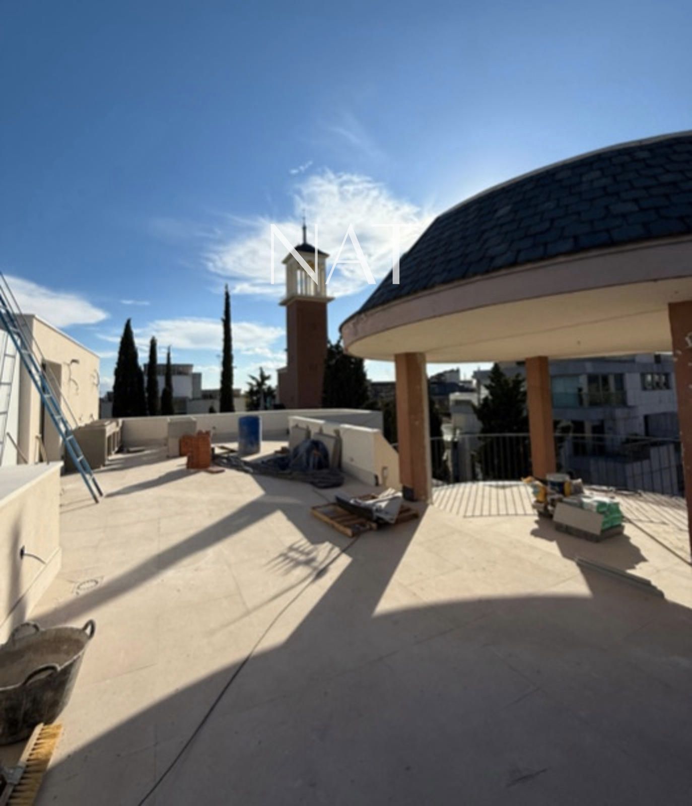 Uno de los grandes atractivos de esta propiedad es su espectacular terraza en la planta superior: 200 m² de espacio exterior privado que alberga una piscina, zona de solárium y un gimnasio totalmente equipado, convirtiéndola en un verdadero oasis urbano con vistas despejadas.
